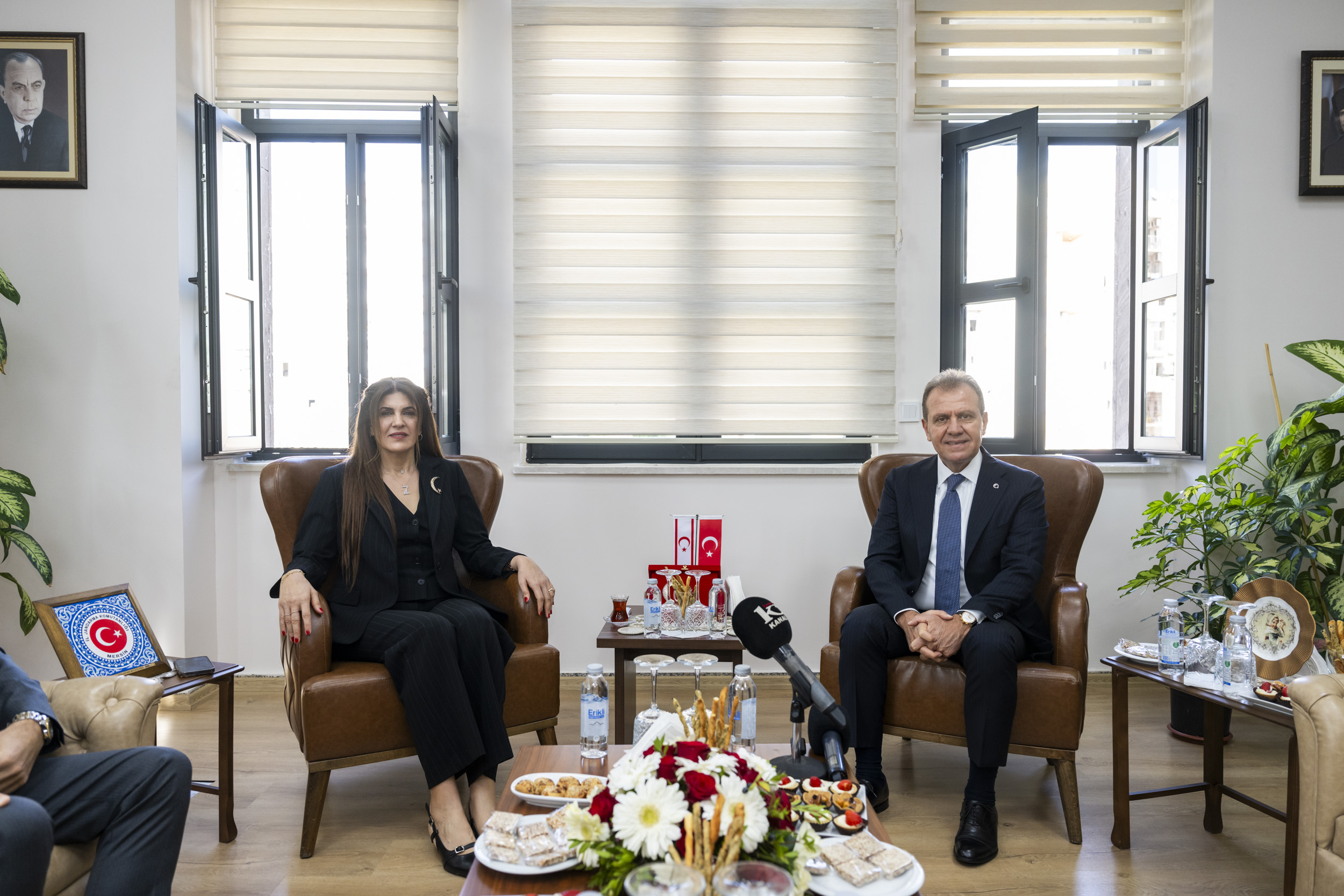 Mersin Büyükşehir Belediye Başkanı Vahap Seçer, Kuzey Kıbrıs Türk Cumhuriyeti’nin (KKTC) 40. kuruluş yıl dönümü dolayısıyla düzenlenen tebrik kabulüne katılarak, KKTC Mersin Başkonsolosu Zalihe Mendeli’yi kutladı.