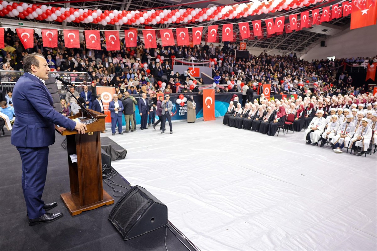 Onlar da çok iyi biliyor ki, ezberlemek ve öğrenmek işin çok önemli bir boyutu; ama idrak etmek, yaşamak ve yaşatmak bir o kadar önemli ve en anlamlı boyutudur. Biraz önce konuşmalarını yapan hocalarımızın belirttiği gibi ilk hafız olan sevgili Peygamberimiz Hz. Muhammed, Kuran-ı Kerim’i öğrenmek ve öğretmekle kalmayıp, onu en iyi şekilde hayatında tatbik ederek bütün nesillere örnek bir yaşam ortaya koymuştur.