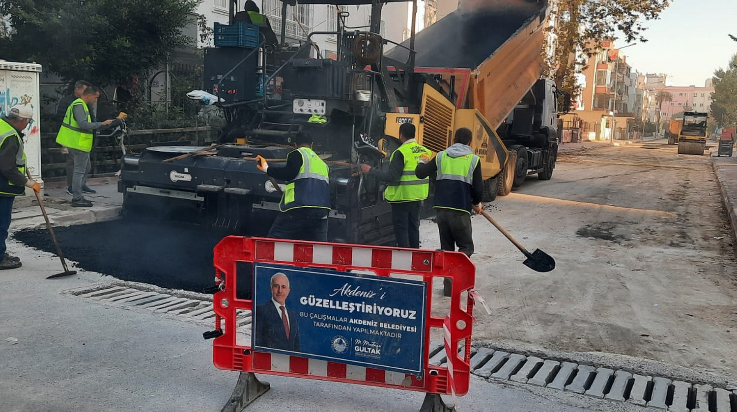 AKDENİZ’DE ASFALT SERİM ÇALIŞMALARI ARALIKSIZ SÜRÜYOR