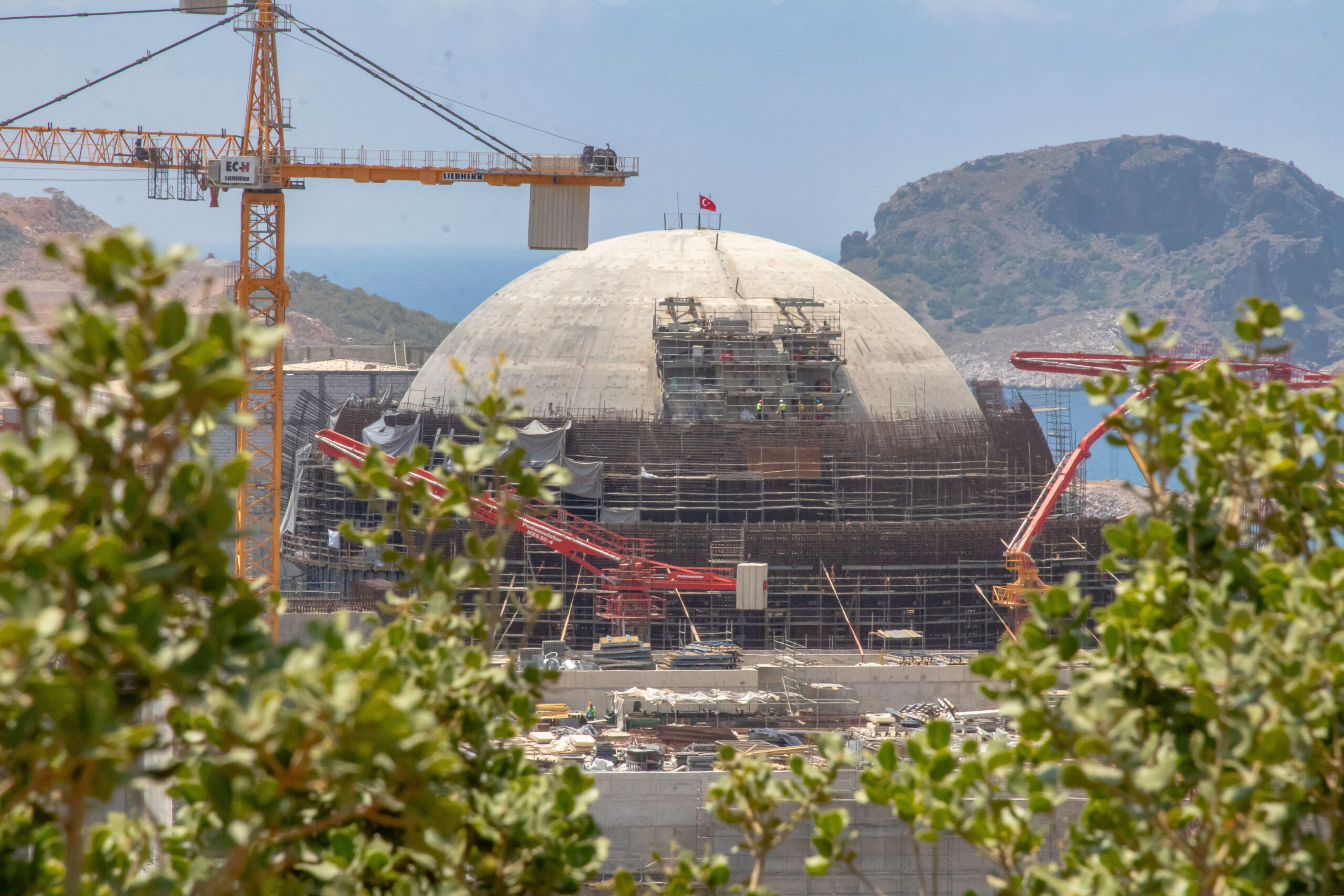 11 Temmuz 2024, Büyükeceli, Mersin, Türkiye. Mersin’de inşa edilmekte olan Akkuyu Nükleer Güç Santrali’nin (NGS) 1’inci Ünitesinin reaktör binasında muhafaza öngerme sisteminin montajı tamamlandı. Bu sistem, reaktör binasının iç koruma kabını dış ortamdan izole eden ve güvenli bir bariyer oluşturan hermetik muhafazanın bir parçası olma niteliği taşıyor.