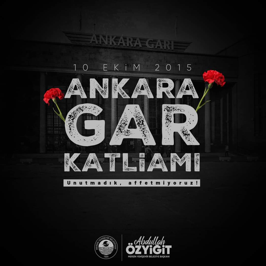 Mersin Yenişehir Belediye Başkanı Abdullah Özyiğit, 10 Ekim 2015 tarihinde Ankara Garı önündeki “Barış Mitingi”ne yönelik düzenlenen terör saldırısının 9. yılında yaşamını yitirenler için anma mesajı yayımladı.
