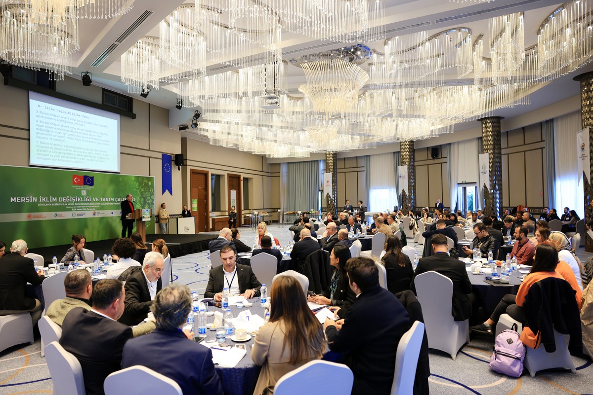 Avrupa Birliği ile Türkiye Cumhuriyeti tarafından finanse edilen Mersin Ticaret ve Sanayi Odası (MTSO) tarafından koordine edilen, Mersin Büyükşehir Belediyesi, Boğaziçi Üniversitesi ve Alata Bahçe Kültürleri Araştırma Enstitüsü Müdürlüğü ortaklığında yürütülen “Bitkilerin Sesine Kulak Verin, İklim Değişikliğine Uyum Sağlayın” isimli proje kapsamında “Mersin İklim Değişikliği ve Tarım Çalıştayı ” düzenlendi. İklim değişikliğinin başta Mersin ve bölgeye olan etkilerinin tartışıldığı Çalıştayda var olan ve gelişebilecek sorunlarla bu sorunlara çözüm önerilerinin bulunması hedeflendi. Küresel iklim krizinin sektöre getireceği olumsuzluklara çözüm hedefiyle Mersin tarımının geleceğini şekillendirecek eylem planına temel oluşturuldu. Bu çalıştayın çıktıları bölgede iklim değişikliğine uyumlu yeni ürün deseninin oluşturulmasına yönelik yapılan çalışmaya da altyapı oluşturacak. Çalıştaya MTSO Yönetim Kurulu Başkanı Hakan Sefa Çakır ve Yönetim Kurulu Başkan Yardımcısı Mustafa Özdamar’ın yanı sıra MTSO’nun ilgili Komite Üyeleri, kamu kurum ve kuruluş temsilcileri, tarım sektör paydaşları ve akademisyenler katıldı.