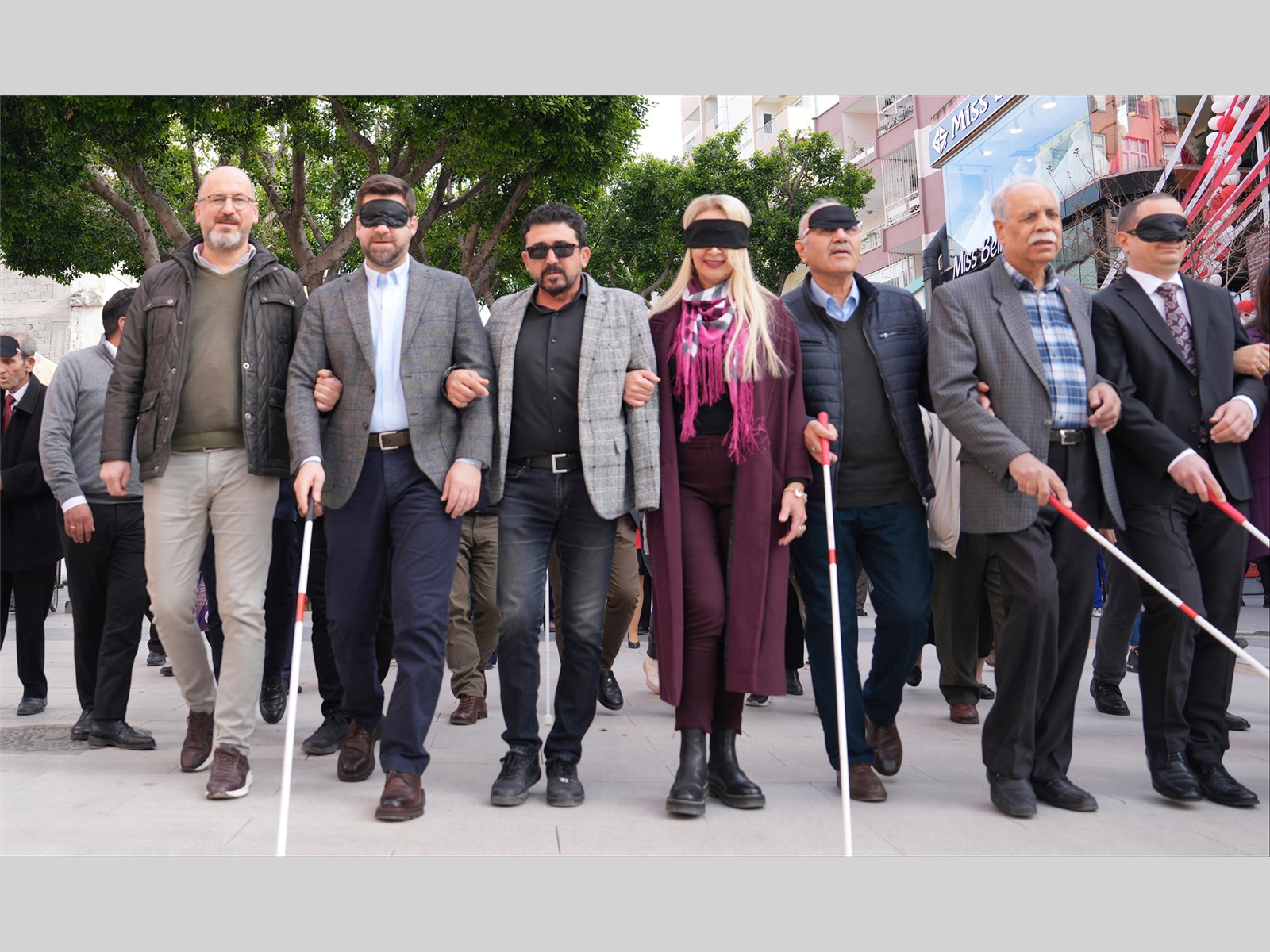 Tarsus Belediye Başkanı Ali Boltaç, “Beyaz Baston Görme Engelliler Farkındalık Haftası” kapsamında Yarenlik Alanı’nda düzenlenen anlamlı etkinliğe katıldı. Başkan Boltaç, görme engelli bireylerin yaşadığı zorluklara dikkat çekmek ve toplumsal farkındalığı artırmak amacıyla siyah göz bandı takarak beyaz bastonla yürüdü.