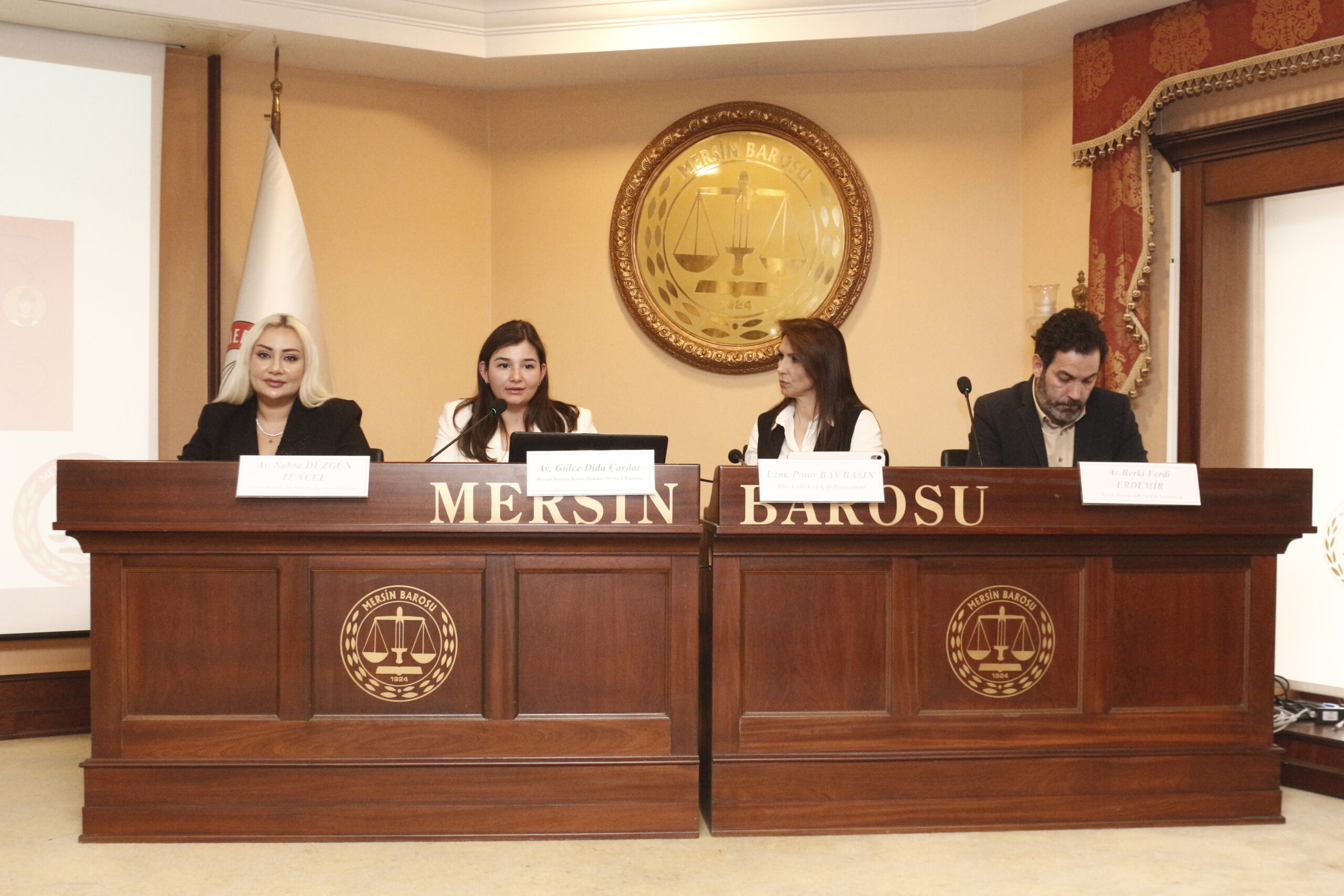 Mersin Barosu Kadın Hakları Merkezi, Aile Hukuku Komisyonu ve Adli Yardım Bürosu tarafından, Mersin Barosu Kadın Hakları Merkezi üyesi ve Adli Yardım Bürosuna kayıtlı avukatlar ile stajyer avukatlara yönelik ”Kadın Hakları ve Aile İçi Şiddet ” konulu sertifikalı meslek içi eğitim programı düzenlendi.