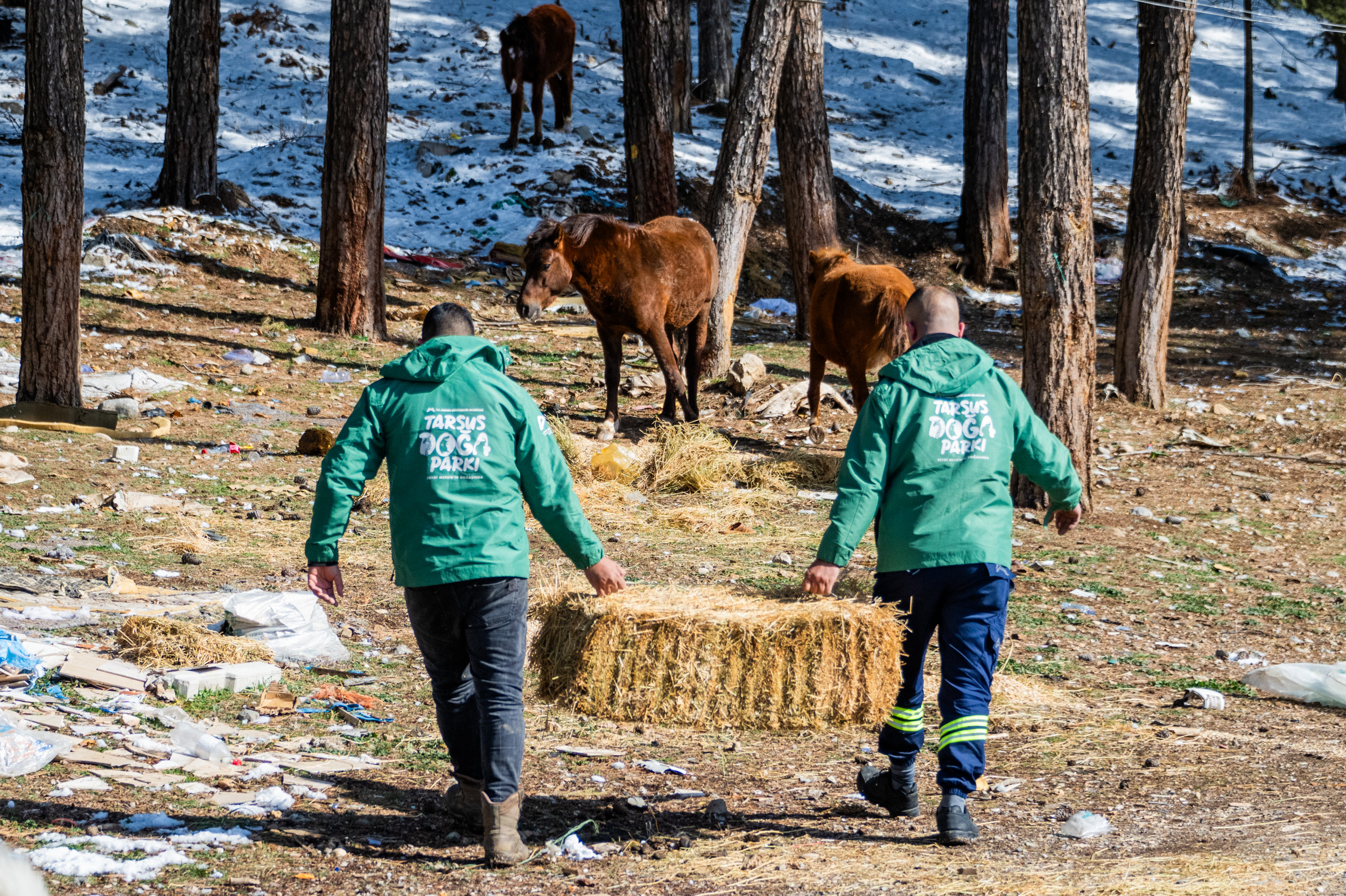 Veteriner İşleri Dairesi Başkanlığı’na bağlı Tarsus Doğa Parkı’nda görevli Biyolog Yılmaz Ölmez, her yıl atlar için yem getirdiklerini belirterek, “Mersin Karboğazı mevkii, yazlık ve yaylalık bir alan. Bu alanda başıboş köpekler ve yabani atlar yaşıyor. Her sene olduğu gibi bu kış mevsiminde de buraya gelip atlarımızı ve yabani köpekleri besleyerek, kışı rahat geçirmeleri için onlara destek veriyoruz” dedi.
