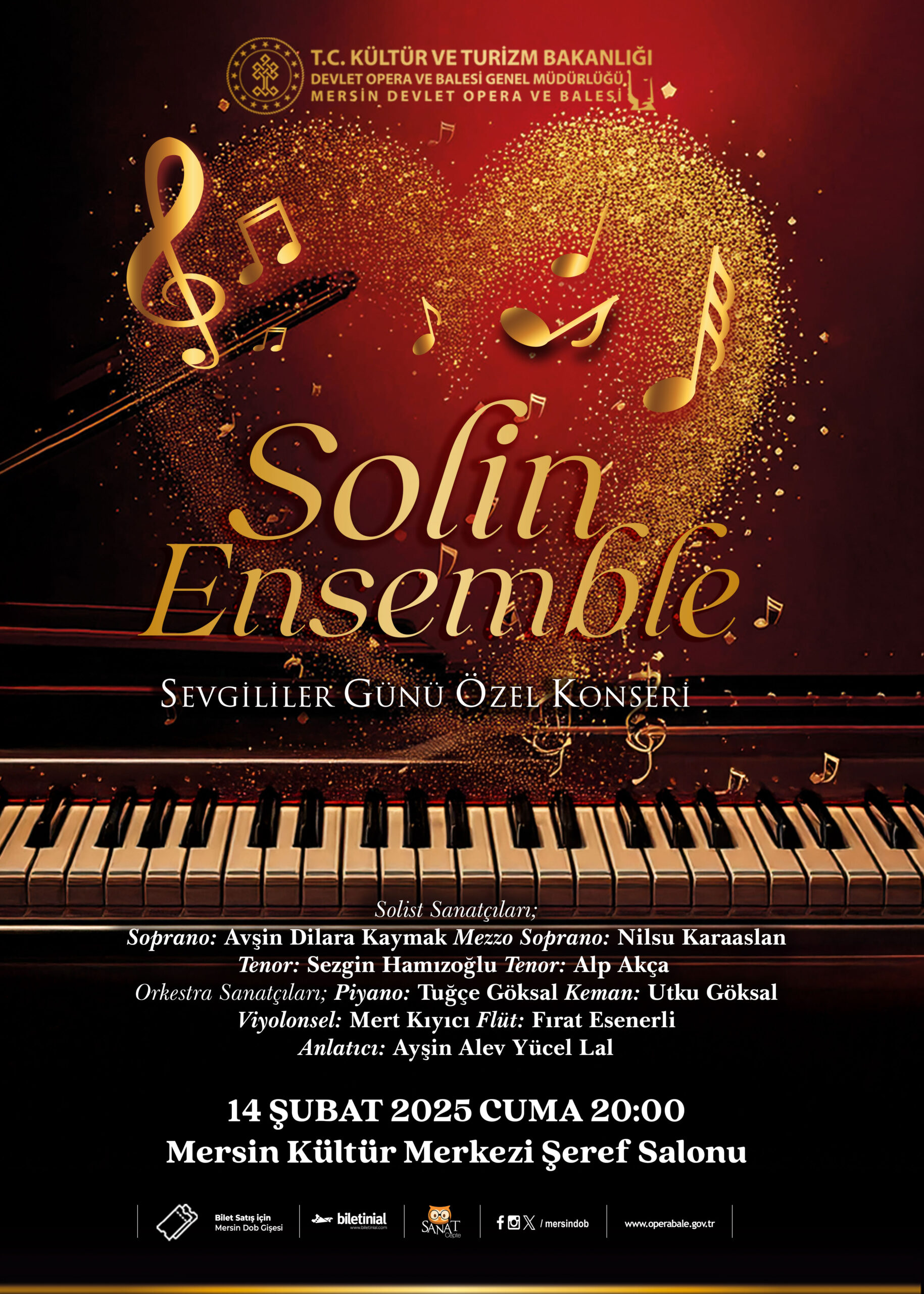 Mersin Devlet Opera ve Balesi (MDOB), Sevgililer Günü’nde sanatseverlere unutulmaz bir müzik ziyafeti sunmaya hazırlanıyor. 14 Şubat 2025 Cuma günü saat 20.00’de, Mersin Kültür Merkezi Şeref Salonu’nda gerçekleşecek bu özel konserde, aşkın büyüsünü yansıtan birbirinden değerli eserler seslendirilecek.