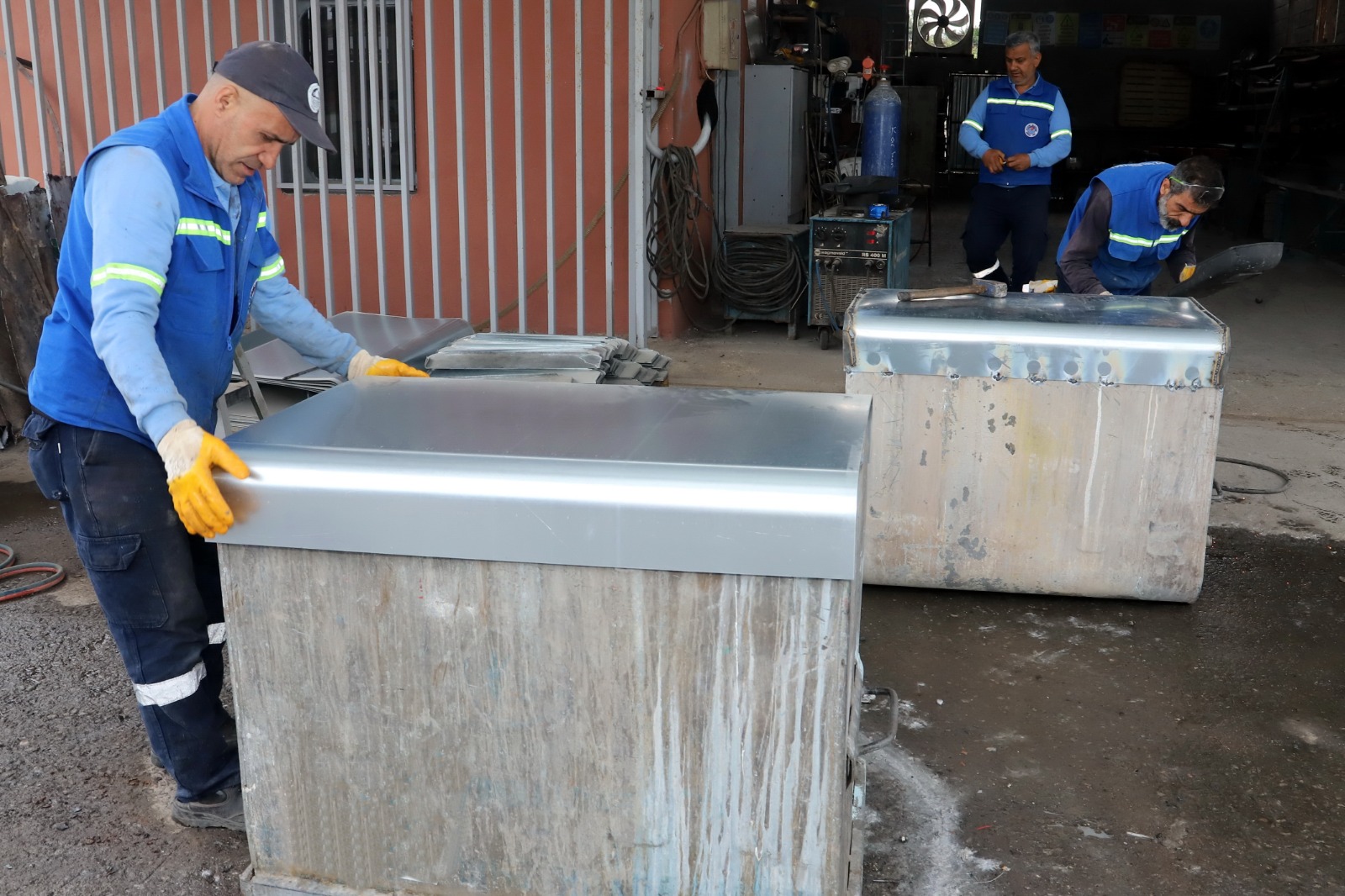Öte yandan; makine ikmal sahasında, farklı hizmet birimleri için ihtiyaca göre ürün ve malzemeler de üretilirken, bu sayede belediye büyük bir maliyet kaleminin önüne geçerek tasarruf elde ediyor. Teknik ekipler ayrıca; halk sağlığını korumak, temiz ve sağlıklı bir çevre sunmak amacıyla Akdeniz’in 65 mahallesi ve binlerce sokağında bulunan çöp konteynerlerini de yeniliyor.