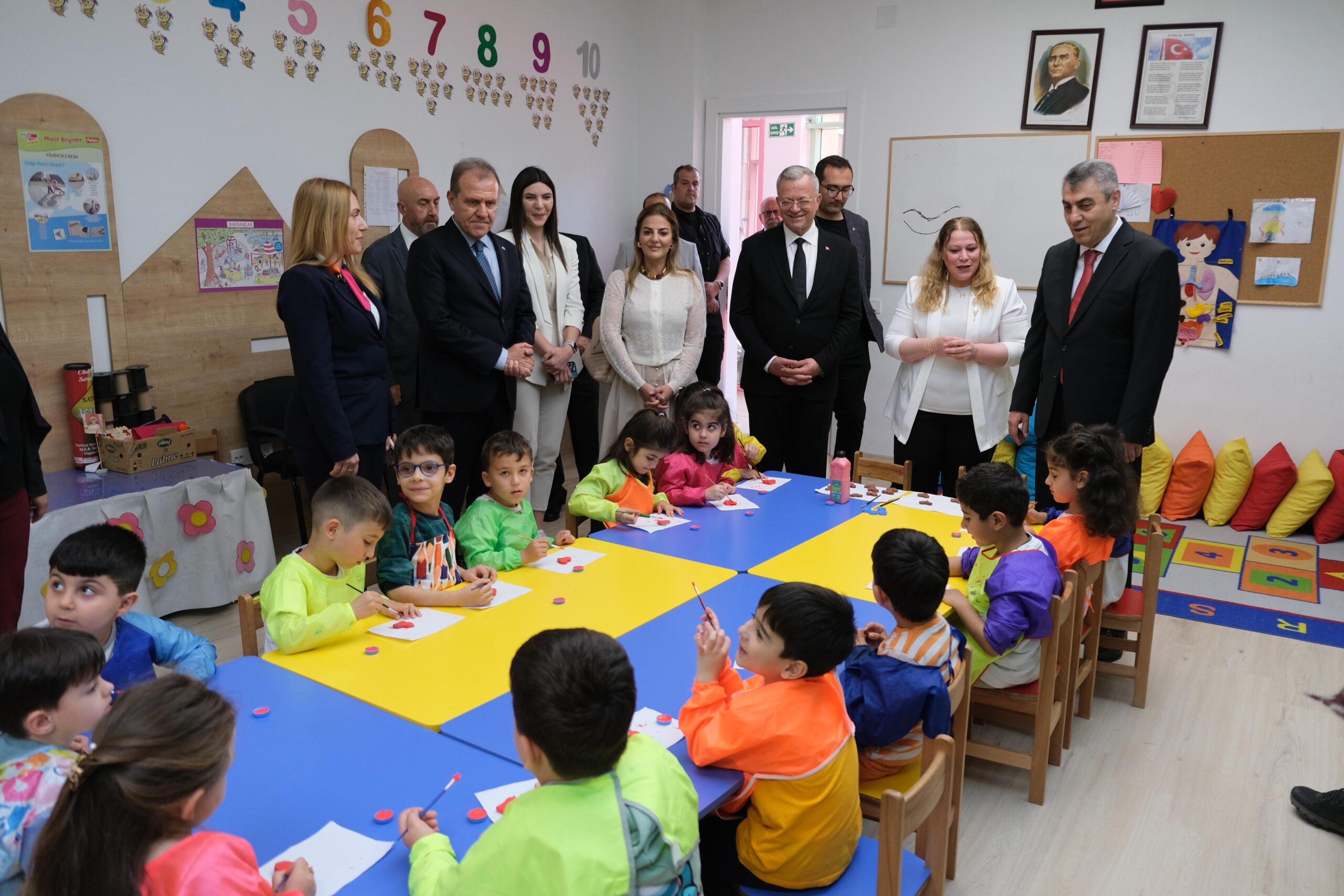 Heyet sonrasında Mersin OSB içerisinde bulunan Özel Esra Şemsi Gündüz Bakımevi’nde incelemelerde bulundu ve eğitim gören çocuklara hediye takdim etti.
