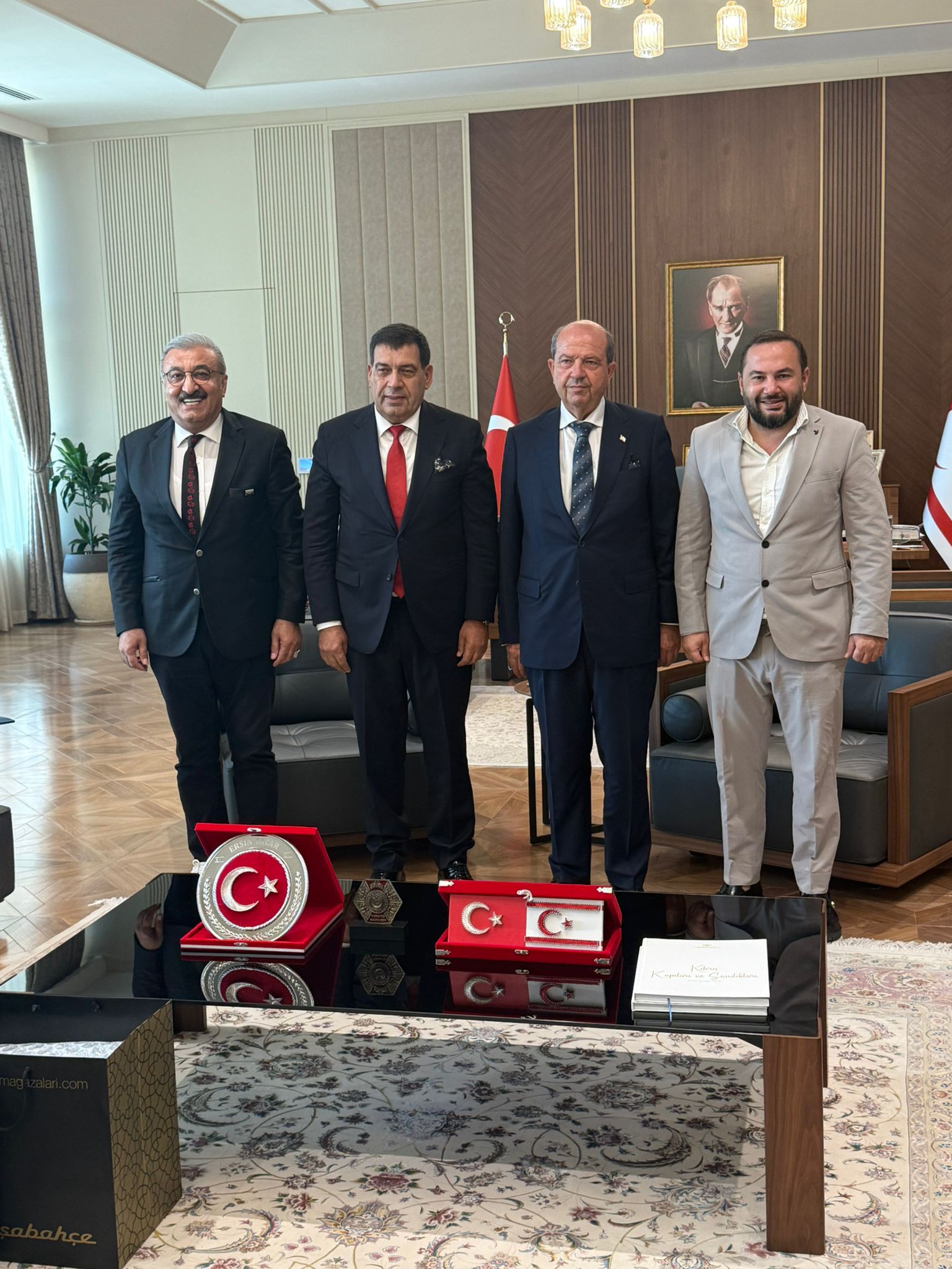 Kuzey Kıbrıs Türk Cumhuriyeti Cumhurbaşkanı Ersin Tatar, Cumhurbaşkanlığı yeni külliyesinde Kazakistan Cumhuriyeti Mersin Fahri Konsolosu ve Dünya Barış Elçisi Ödülü sahibi Ahmet Budan’ı kabul etti.