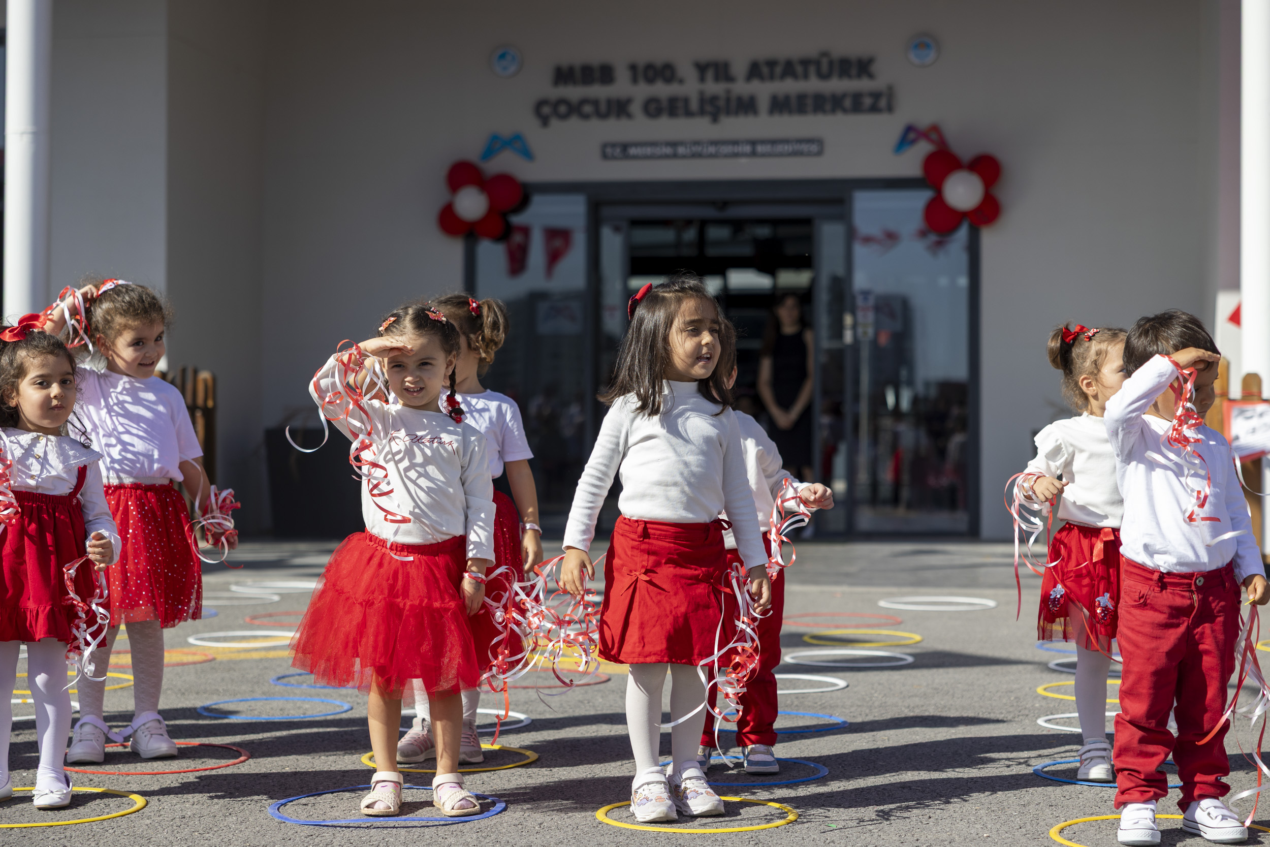 Mersin Büyükşehir Belediyesi Kadın ve Aile Hizmetleri Dairesi Başkanlığı’na bağlı Çocuk Gelişim Merkezleri ve Çocuk Atölyelerinde, 29 Ekim Cumhuriyet Bayramı coşkuyla kutlandı. Cumhuriyet’in ilan edilişinin 102. yılı dolayısıyla düzenlenen etkinliklerde minikler, yaşlarına uygun gösteriler sergiledi. Renkli kostümler, marşlar ve danslarla süslenen kutlamalarla, çocuklar ve veliler büyük mutluluk yaşadı.