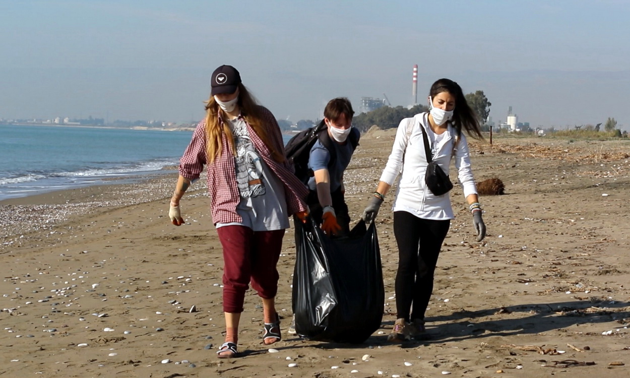 Mersinlilerin; piknik yapmak veya yaz mevsiminde yüzmek için tercih ettiği kilometrelerce uzunluktaki Kazanlı sahilinin temizliği sırasında, Koronavirüs salgınına karşı alınan önlemler gereğince belediye personeli, dernek üyeleri ve öğrenciler maske taktı.