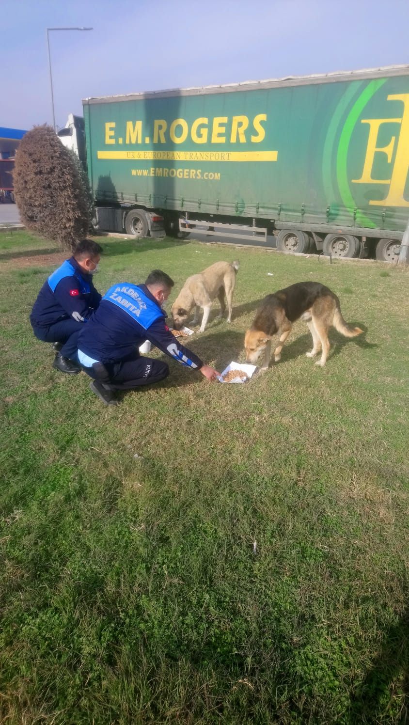 Zabıta ekipleri; Barış, Bahçe, Dikilitaş, Hal, Karaduvar, Çay Mahallesi ile Tırmıl Sanayi Sitesi ile farklı birçok noktada yaşayan yüzlere sokak hayvanını elleriyle besledi ve su verdi.